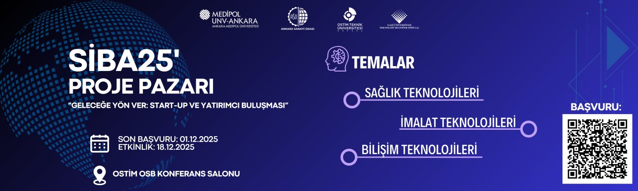 Ankara Medipol Üniversitesi’nin liderliğinde, OSTİM Teknik Üniversitesi, Gazi TTO A.Ş. ve Ankara Sanayi Odası (ASO) iş birliğiyle düzenlenen SİBA25 Proje Pazarı, 18 Aralık 2025’te OSTİM Organize Sanayi Bölgesi (OSB) konferans salonunda gerçekleştirilecek. Yenilikçi projeler geliştiren girişimcileri, akademisyenleri ve sanayicileri bir araya geliyor.